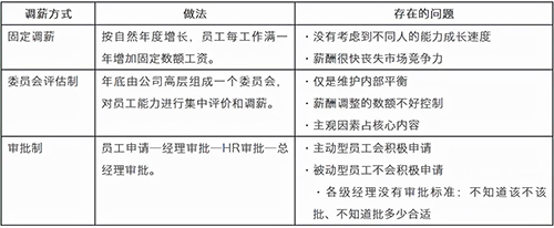 如何调薪是当今很多开云app登录入口所面对的难点,尤其是以能力为核心的岗位,比如研发人员、行政人员等。许多开云app登录入口都还没有建立科学合理的薪酬调整制度,基本上都采取了以下几种做法: