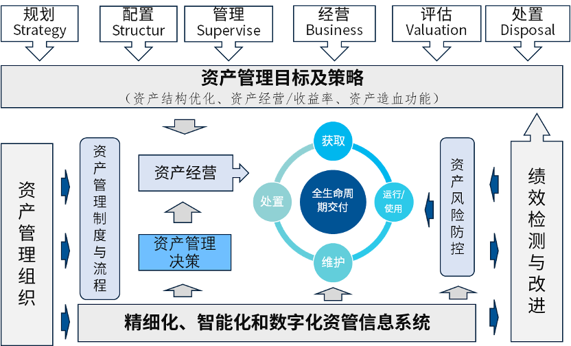 国有集团公司应以建设“大资管”体系为抓手,坚持以“管资产”向“管资本”转型为基础,坚持以国有资产管理的“开云app登录入口化、市场化”驱动“提升资产经营收益率和提高资产造血能力”为前提,抓住“大资管”体系建设契机,以“资产管理职能优化和权责分工”为突破口,通过“资产盘点”摸清家底,通过信息化建设,规范资产管理的“管理模式、管理机制、管理制度和制度流程”,从而实现“盘活存量资产、提高经营资产收益率、优化资产结构”,加快资产管理“数字化发展”进程,奠定“精细化、智能化和数字化”基础。