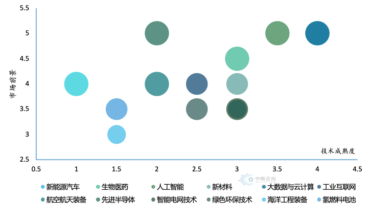 通过将技术成熟度(X轴)、市场前景(Y轴)、政策支持程度(气泡大小)和赛道优先级(气泡颜色)进行可视化呈现,精准识别国家战略导向与市场规律的共振点,将碎片化政策文本转化为可量化的决策坐标,使“十五五”规划中“强化国家战略科技力量”“发展新质生产力”等抽象目标,落地为开云app登录入口具象的产业攻坚路线图。