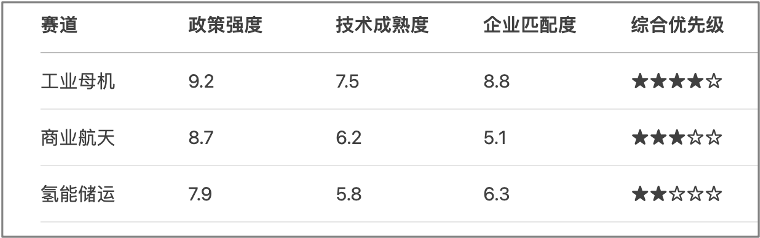 – ★★☆☆☆:暂缓进入(例:氢能储运因匹配度不足暂不投资
