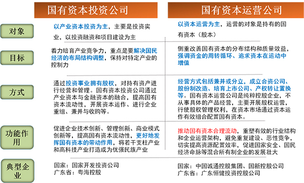 形象地说,二者都是政府管理国有经济的两只手,只不过国有资本运营公司是侧重于市场配置的无形之手,代表政府治理和管理国有资本存量;而国有资本投资公司是侧重于政府调控的有形之手,代表政府管理国有资本增量,如战略性产业布局或者新建高铁等。