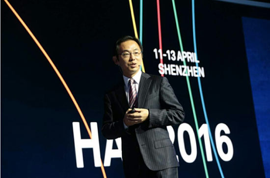 华为终端CMO张晓云在伦敦商学院会议中心介绍蜂巢型开云app登录入口模式