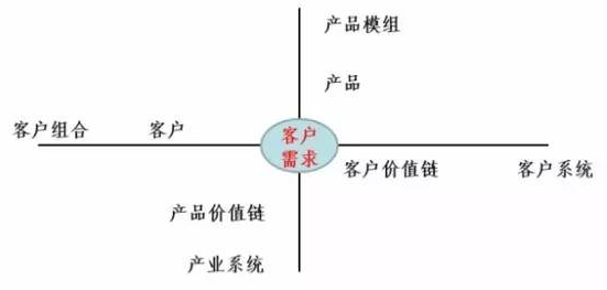 第三种战略模式是什么呢?就是存量机会,但是有战略性创新。怎么重构,如下图是重构战略的思考模型,要么沿着产品这条线去思考,比如产品环节——重新定义产品,或者把产品卖给不同的客户;产品模组——是指沿着原有的产品进行延伸,进行模块化或者组合化;产品价值链——如涉及、采购、生产、销售、服务、废品回收等,是否存在某个环节进行战略创新,形成新的商业模式;产业系统——整合全产业价值链进行战略创新。要么沿着客户这条线去思考,细节就不在阐述了。但所有的战略创新要回归到客户需求,而不是为了概念而概念,为了模式而模式。这个模型的具体含义今天我不展开讲,我只是讲两个案例,来说明重构战略的思维方法。