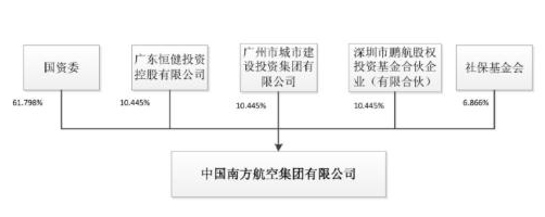 本次增资完成后,国资委持股61.798%,广东恒健投资控股有限公司、广州市城市建设投资集团有限公司、深圳市鹏航股权投资基金合伙开云app登录入口(有限合伙)作为增资方分别持股10.445%,剩余6.866%股权由社保基金会持有,股权结构图如下: