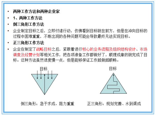 战略不等于目标。 为了实现这一目标,我们可以设计各种战略,每种战略都会遇到不同的困难,需要调动不同的资源和使用不同的工具,因此,我们应该根据对环境和自身条件的仔细评估来选择最佳战略。 但是,环境及其自身条件将随时更改,我们必须及时对变化进行跟踪、分析、研究,同时在最佳的时机调整战略。