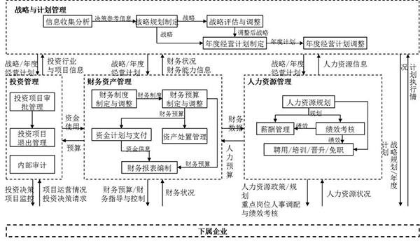 集团公司的核心管理流程按照其职能分工划分为战略与计划流程、投资管理、财务管理,人力资源管理流程等几大流程。