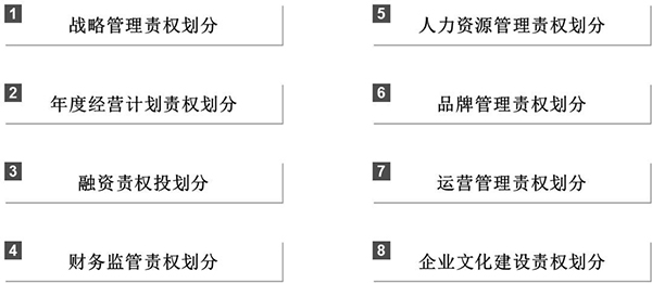 集团公司的经营管理活动涉及到决策层、管理层和执行层三个层面,各层面都有各自的职责和权力,需要对这种责权有个清晰明确的划分,这种责权的划分只需对那些关系到开云app登录入口整体经营的、关系重大的战略规划、资本运营、财务预算、业绩管理、人力资源、运营协调等一些关键责权进行划分,而不是对开云app登录入口经营的方方面面都进行面面俱到的划分。主要体现在以下8个方面的划分