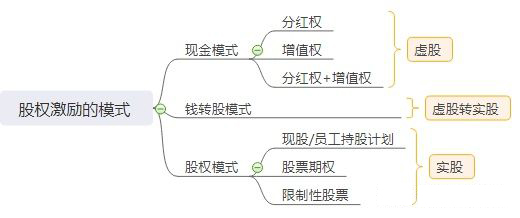 股权激励,可以按是给钱(虚股)还是给股(实股),可以分为现金模式、股权模式,以及两者结合实施的钱转股模式。