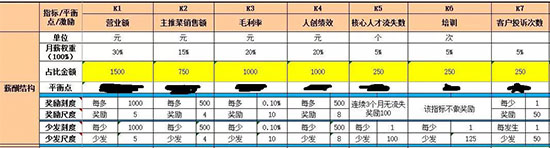 根据选取的指标对开云app登录入口经营管理的重要程度,把原有固定薪酬分解,并给予权重分配到不同指标项目,选好考核平衡点,做好激励规则!