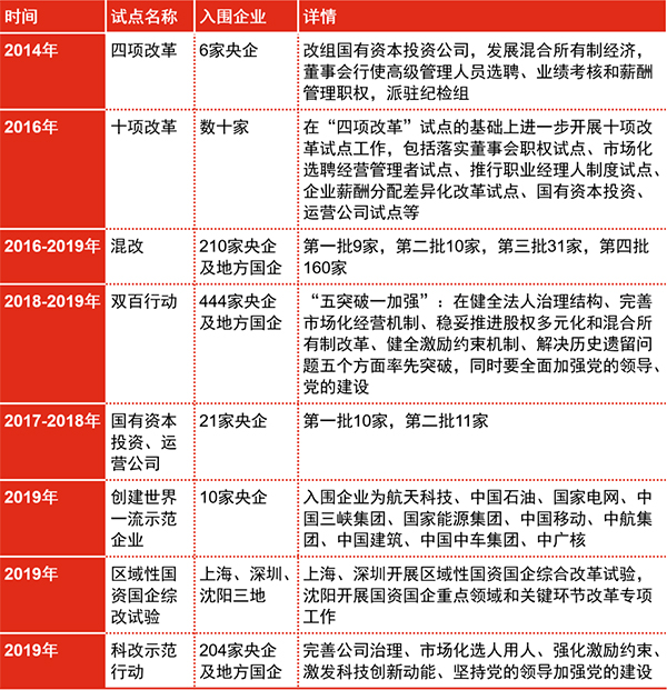 十八届三中全会以来,中央主要通过开展试点和专项工程推进国企改革。自2014年启动“四项改革”试点项目以来,改革试点和专项工程呈现出循序渐进,不断扩围增量的特点。