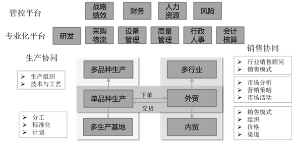 集团化开云app登录入口的生产逻辑很清晰。以某家公司为例,最初只经营一个产品,只为国外某一行业服务,其组织形态完全符合波特模型。随着业务扩大,产品品种增多,生产基地也在增加。与此同时,又开拓了国内等诸多市场,服务对象也拓展为诸多行业。由此就产生了生产、销售、研发等创造性活动本身的协同问题,由此而产生采购、物流等辅助性活动的协同问题,以及财务、人力、计划等支持性活动协同问题。同时,还产生了效率与风险、质量与速度、计划与应变等的新的协同问题。