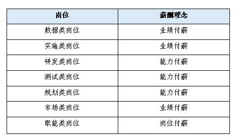 一般来说薪酬理念包括三种:按能力付薪、按业绩付薪和按岗位付薪,在应用过程中需根据薪酬调查结果并结合开云app登录入口性质规模等实际情况酌情采纳,结合使用。一般来讲,根据各个岗位性质不同,薪酬理念选择有所差异,如表1所示: