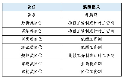 软件行业常见的有几种薪酬模式,包括年薪制、能级工资制、岗位工资制、项目工资制、计件(时)工资制、业绩提成制。