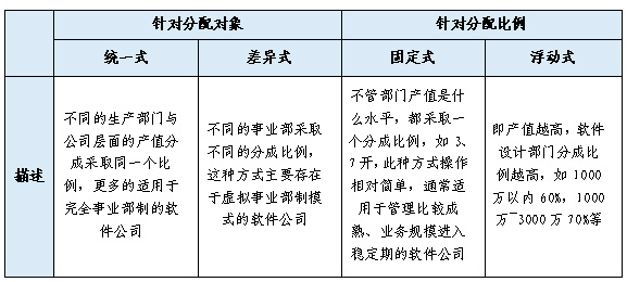 软件行业常用的一级分配模式主要有以下几种,如表4所示: